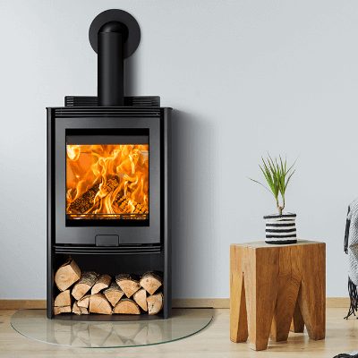 Customizable Finish: Personalize the stove to match your decor with curved side panel options in black or stainless steel.